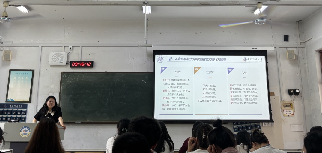 会上,于文倩从规范引领、问题警示、强化举措和隐患剖析四个部分详细解读了宿舍检查标准,重点强调了“四勤”“五不”“六要”行为规范,展示了学院优秀宿舍的范例,为同学们树立了学习榜样,组织学习了宿舍安全教育视频,进一步提升了员工的安全防范意识和应急处理能力。