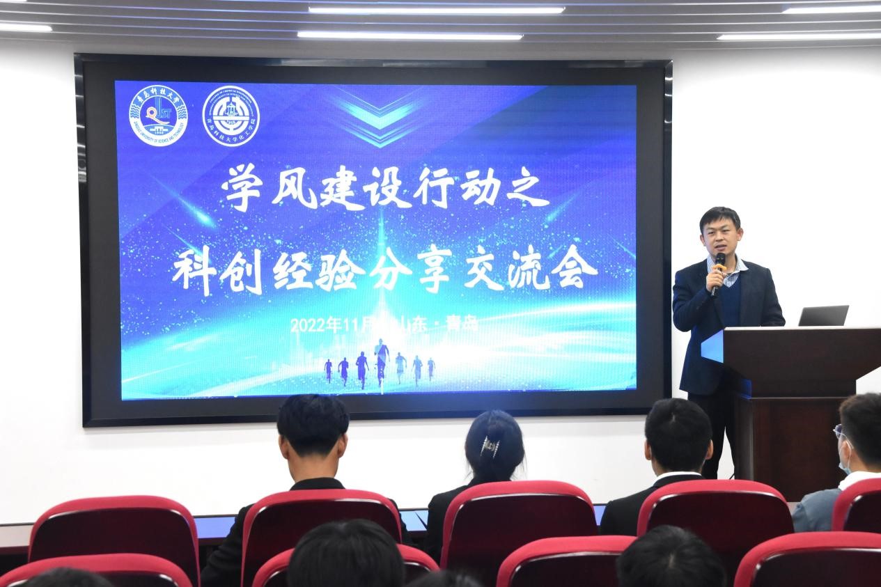 会上,秦洪庆介绍了学院科创工作基本情况以及科创对于人才培养的重要意义。他指出,老员工在校期间参加科学研究、科创竞赛是提高创新能力的有效途径,参加“挑战杯”、“互联网+”等重大赛事不仅使得员工自身科创水平大幅提升,同时也对进一步推动学院的团队建设具有重要意义。