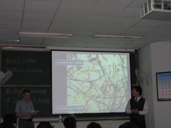 作为拥有优秀轻化造纸学科的北卡大学的顶级教授,在这个下午为我们带来了一场精彩而不乏幽默的讲座。讲座主要涉及造纸工业流程中的三个方面,电荷平衡、水力前切和微米颗粒的应用。讲座中Hubbe教授用中英文分别对内容进行说明,同时其幽默风趣的语风和体态是同学们笑声不断。