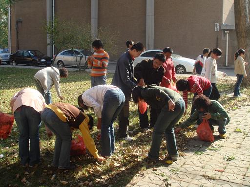 为了响应学校关于文明促进月的号召,提高老员工文明素养,化工0604班全体成员于11月8日下午举行了清洁校园行动,为校园的美化贡献出自己的一份微薄之力。