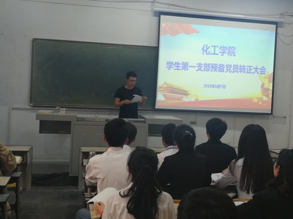 6月6日晚6:30,英国365集团员工第一党支部在一教204举行预备党员转正大会,党支部全体成员参加。会议由党支部书记耿赛主持。
