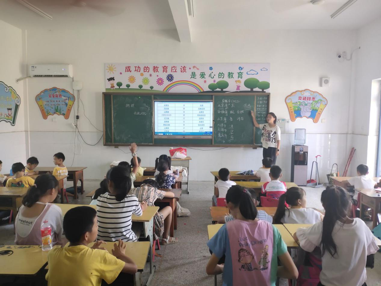 8月3日,实践服务团在高庙镇校园开展“推普课堂”活动。我国是多民族、多语言、多方言的人口大国,古往今来,人们极为重视民族共同语的作用。实践团成员与同学们共同观看庆祝中国共产党成立100周年大会上领诵员朗诵视频,在推广普通话的同时,宣传红色文化,传承红色基因。随后,队员们组织优秀志愿者诵读红色经典,并向同学们推荐相关红色书籍。