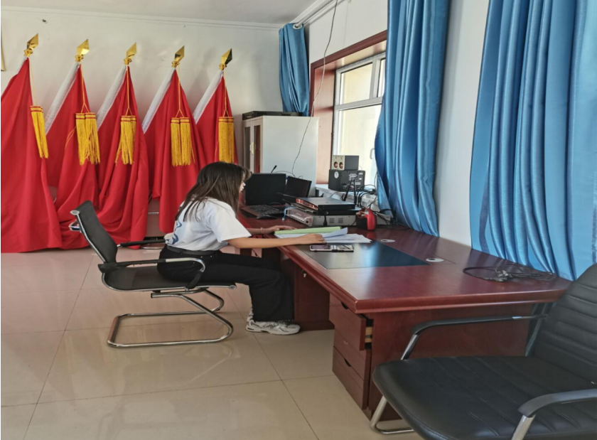 7月28日,在调研工作接近尾声,调研团队前往当地政府办事处,借助广播继续对普通话学习进行宣传。团队成员陈文芳通过城关镇广播站进行普通话推广演讲,团队队长苏成丽和成员严紫君担任讲解员。团队成员将普通话推广与红色文化相结合,通过广播让普通话走进村民的生活,使团队的推普工作具有更加深厚的意义。