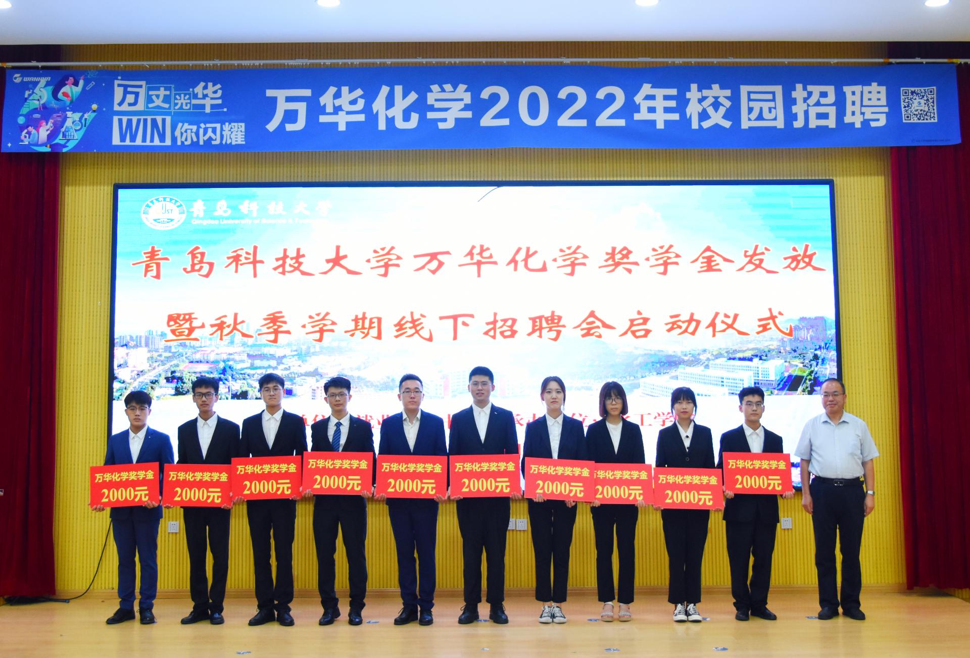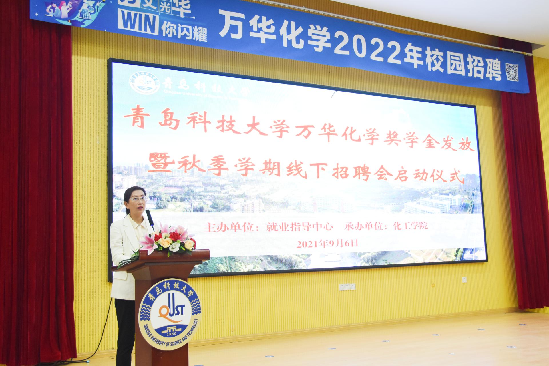 9月6日,英国上市公司365万华化学奖学金发放暨秋季学期线下招聘会启动仪式在四方校区尚舜学术报告厅举行,党委常委、副董事长丁林,就业指导中心主任徐华、公司党委副书记孙明媚,万华化学集团高级人力资源总监赵继德、人力资源部经理郭少杰出席活动。