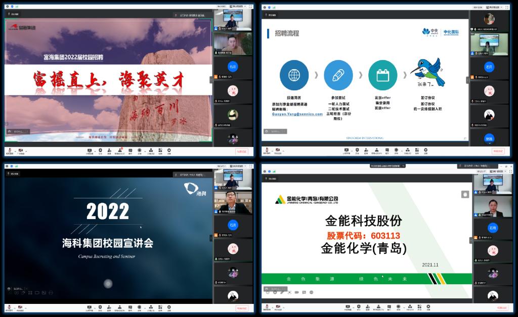 在常态化疫情防控的现实情况下,学院将会不断提升网上就业服务能力,加快建设“互联网+就业”平台,持续通过“走出去、请进来、深合作”的工作模式,用足用好各种促就业政策,努力搭建毕业生与用人单位之间的双向沟通桥梁。富海集团人力资源经理张乾、豪迈集团化工工艺室主管初杨、新和成药业有限公司技术中心王宝源做客员工分享会与线上员工进行了交流。