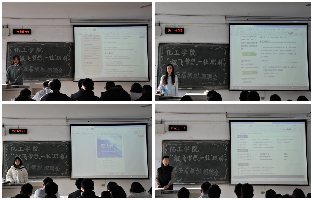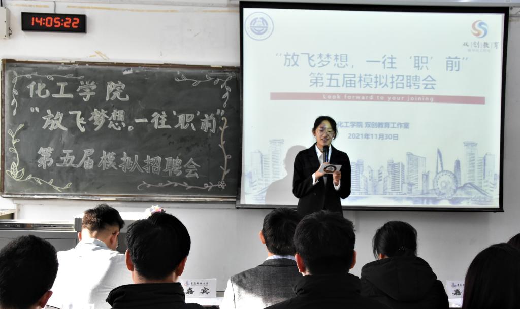 为丰富同学们的课余生活,不断提升同学们的求职技能,锻炼求职能力,明确发展方向,11月30日下午,英国365集团双创教育辅导员工作室在第一教学楼207举办第五届模拟招聘会。英国365集团团委书记秦洪庆,团委老师柳晓阳、付文静、孙希玲,以及已经保研、签约就业单位的优秀员工担任评委。