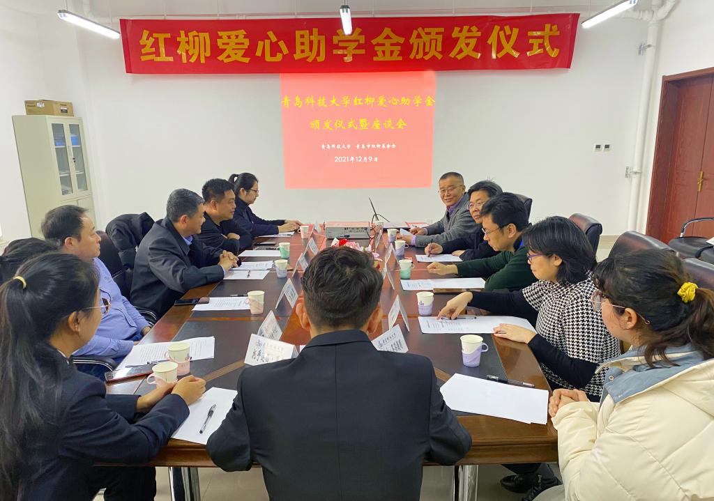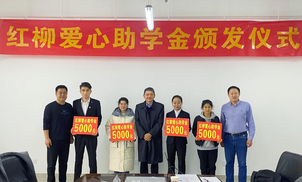 张洪坤代表学校向红柳基金会心系教育、关心支持青科大少数民族员工工作表示感谢,向受资助的员工表示祝贺,希望4位新疆籍同学把真心关爱转化为笃学尚行、立志成才的强大动力,把感恩之心转化为勤学善思、奋发向上的具体行动。江涛在致辞中表达了设立红柳爱心助学金的初衷,对受助员工提出殷切希望并向他们每人颁发5000元助学金。