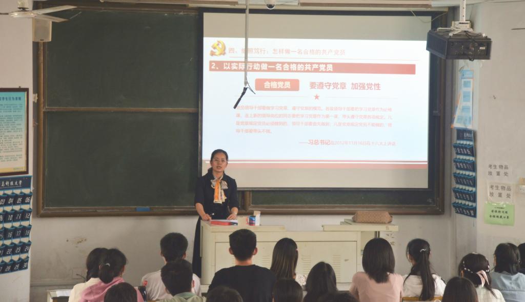 孙明媚以“年轻党员在行动”短片为导入,讲述各行各业年轻党员坚守岗位默默付出的感人事迹,他们以无私的工作态度、忘我的敬业精神,为自己从事的事业付出了满腔热忱,深刻诠释了对党忠诚、敢于担当、无私奉献的优秀品质。随后,孙明媚从申请入党的条件、共产党员标准和共产党员的义务权利三方面进行讲解,为同学们全面解读党员发展流程,引导同学们不断提高党性修养,进一步向党组织靠拢,争取早日成为一名光荣的中国共产党党员。最后,孙明媚结合伟大建党精神,激励同学们不断学习科学文化知识,提高政治理论素养,增强党性修养,鼓励同学们牢固树立艰苦奋斗、求是奉献的价值追求,以实际行动为伟大的祖国贡献青春力量。
