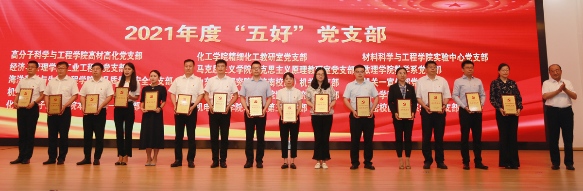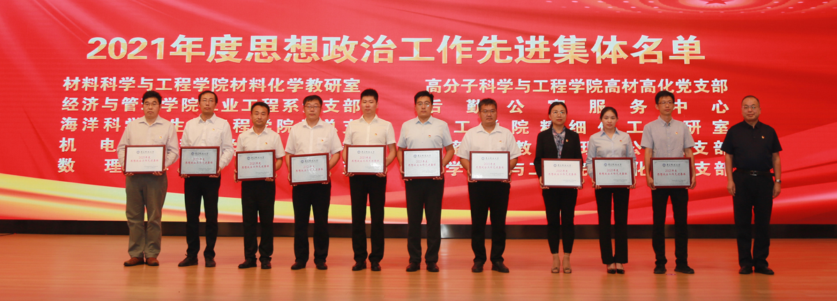 为热烈庆祝中国共产党成立101周年,7月1日下午,学校在崂山校区第二报告厅举行2022年党建与思想政治工作会议暨“光荣在党50年”纪念章颁发仪式。校领导,院级党组织书记、经理、副书记,基层党支部书记、思政课教师、辅导员、员工党员代表等参加会议。