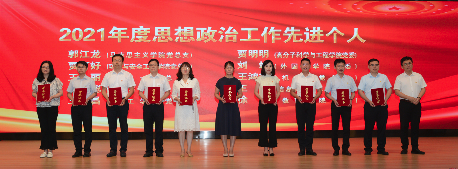 在2021年度党建与思想政治工作优秀论文(案例)评选中,王乐昌等撰写的论文《党史学习教育融入高校立德树人的价值意蕴及实现维度》获评一等奖,耿赛等撰写的案例《以党建引领创新创业育人新模式,打造“六位一体”生态融合体系》、付文静等撰写的论文《网格化视域下员工党员联系宿舍服务管理体系的构建》分获二等奖,秦洪庆等撰写的论文《新时代老员工劳动教育生态系统构建的研究》、付文静等撰写的案例《网格化视域下员工党员联系宿舍服务管理体系的构建》(工作案例)、王乐昌等撰写的论文《新时代老员工爱国主义精神的培育理路及实现策略》、柳晓阳等撰写的论文《基于易班的网络思政教育路径研究——以英国上市公司365为例》分获三等奖。