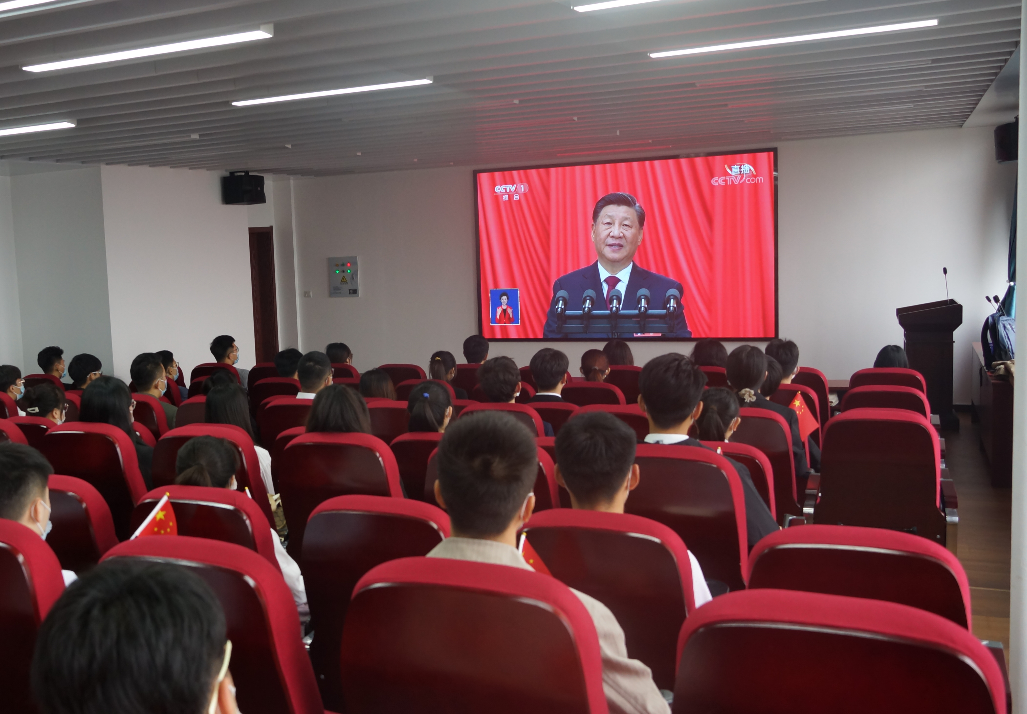 在CCF814报告厅,公司党政领导、党委委员、全体专职辅导员、部分员工党员集中收听收看党的二十大开幕大会盛况,认真聆听习近平总书记代表第十九届中央委员会向大会所作的报告。学院部分员工干部在CCF829会议室认真聆听大会报告,会场响起阵阵掌声。