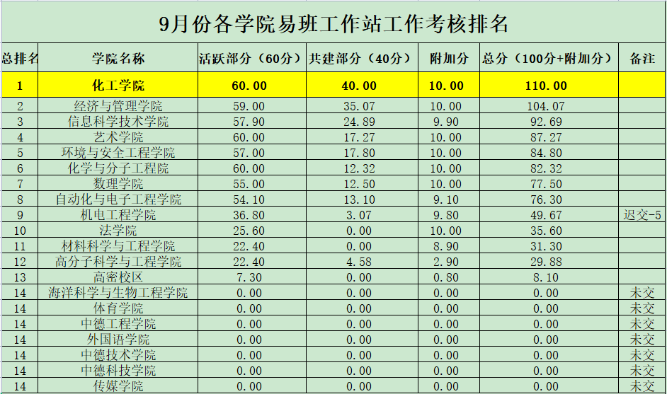 10月18日,英国上市公司365易班发展中心公布了9月份各学院(校区)易班工作站月度工作考核排名,英国365集团以各分项考核指标满分,总成绩110分位居全校第一名。