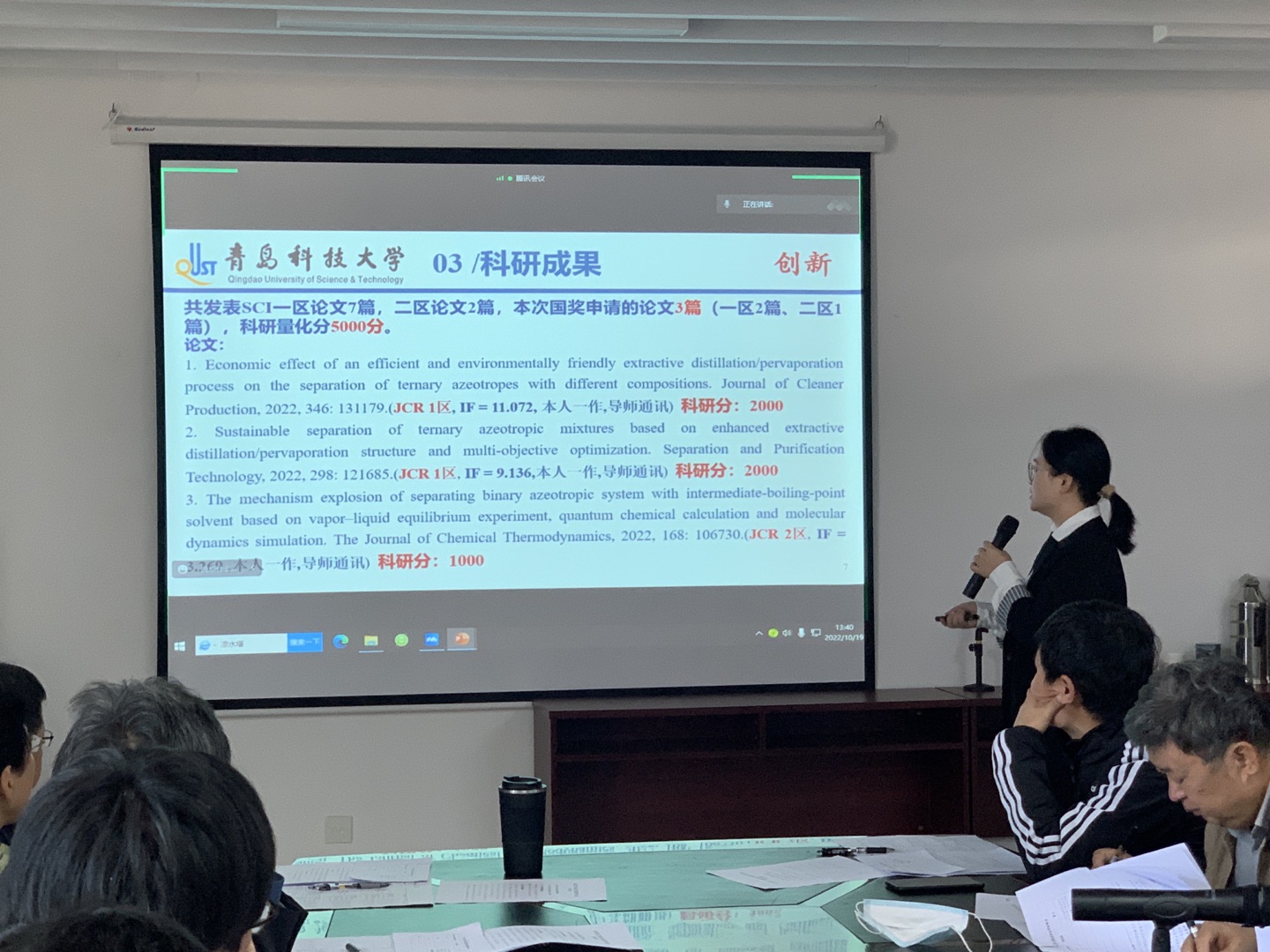 答辩开始后,候选人根据现场抽签结果依次上台,围绕思想品德、科研成果、创新能力和综合素质等方面进行展示报告,并回答评委的提问。