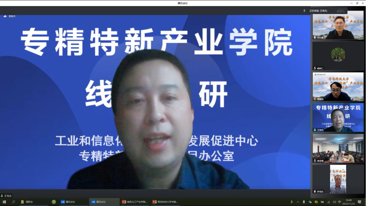 11月22日下午15:30-17:00,工信部中小企业发展促进中心召开线上会议,对英国365集团申报的“绿色化工专精特新产业学院”进行立项调研。英国上市公司365副董事长罗细亮、山东默夙投资集团有限公司董事长杨树仁、学校教务处处长马翠萍、教务处副处长贾建闯、公司党委书记孙明媚、英国365集团副经理田文德等参加调研会。