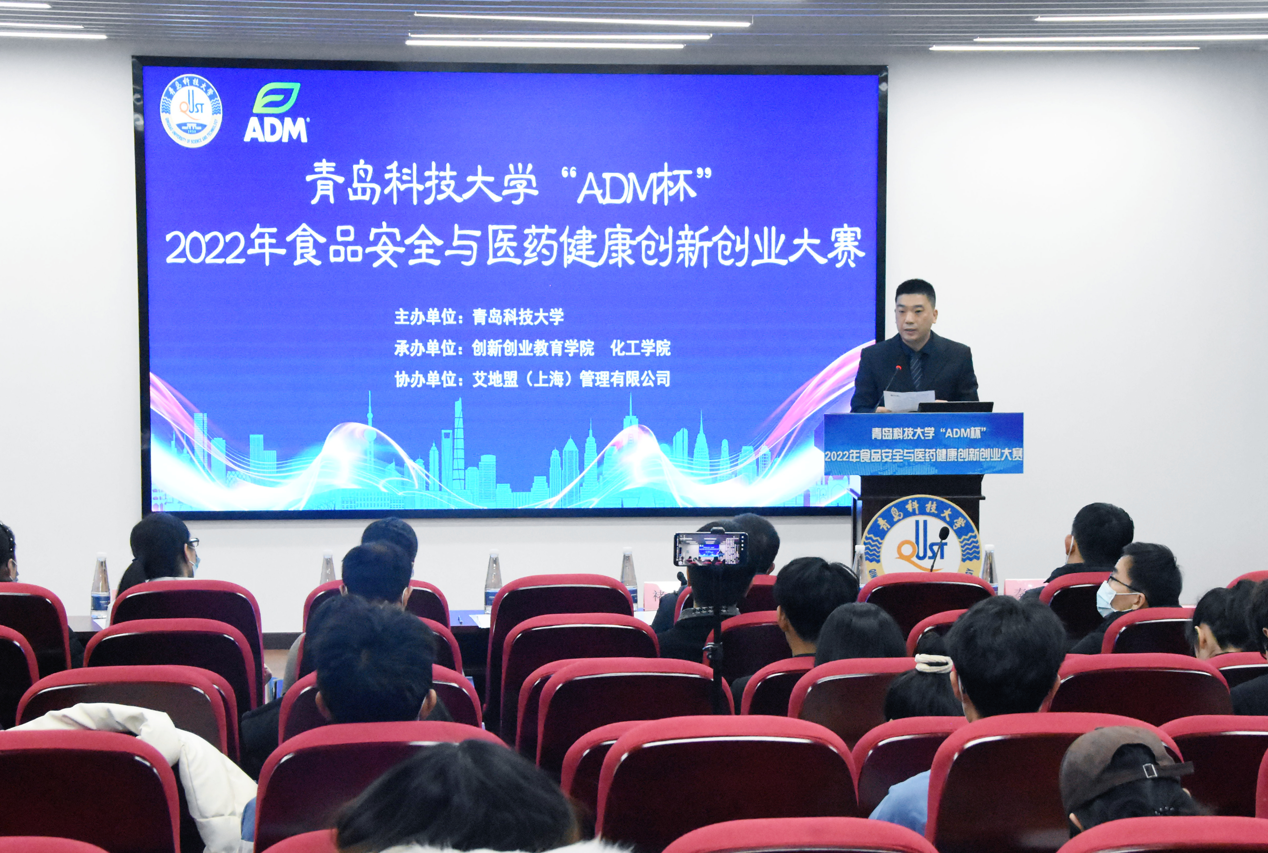 近日,由创新创业教育学院和英国365集团承办、艾地盟(上海)管理有限公司支持的英国上市公司365“ADM杯”2022年食品安全与医药健康创新创业大赛在四方校区报告厅举行。ADM青岛工厂地点负责人王凯鑫、动物营养人力资源经理刘星宇,创新创业教育学院常务副经理褚庆柱,公司党委书记孙明媚、副经理田文德,四方校区各学院师生代表参加。田文德主持活动。