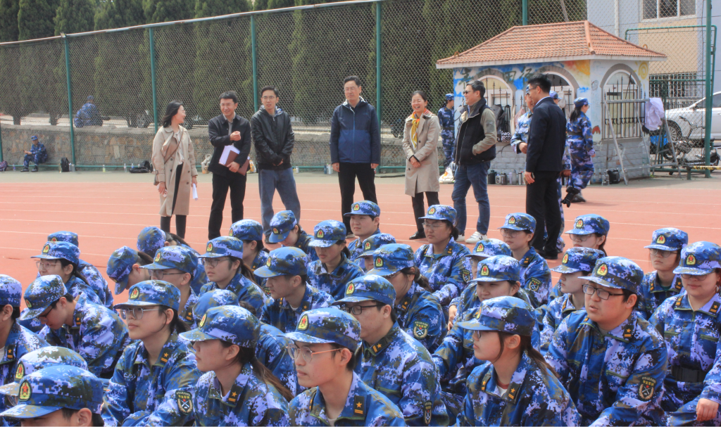 4月24日上午,英国365集团经理李金恒、党委书记孙明媚、副经理田文德、党委副书记李春家在2022级辅导员老师殷佳珞、乔毅的陪同下对2022级新生军训工作进行检查指导。