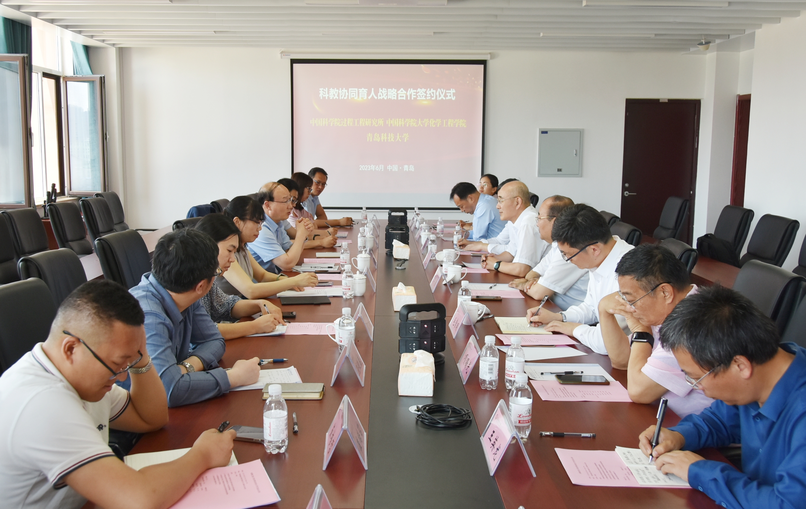 张锁江向学校对中科院过程所和国科大化工学经理期以来的支持表示感谢,并介绍了过程所的具体情况。张锁江强调,近年来国内化工行业的变化日新月异,以化工为主要特色的高校面临的挑战日益剧烈,必须围绕三个方面做好改革创新,才能在竞争激烈的环境中破局突围。一是组“大团队”,要凝练科研方向,突出学科特色,整合学院乃至全校优势资源,组建“百人团队”,实现团队建设一体化,成果转化全链条;二是建“大平台”,串联全校平台资源,整合现有省部级科研平台,合并重组、做大做强,培育孵化具有青科大特色的国家级重点实验室;三是做“大合作”,以本次科教协同育人为起点,加强员工交流、人才交流、项目交流,建立长久紧密的伙伴关系,一起开展大合作,申报大项目,攻关大难题。