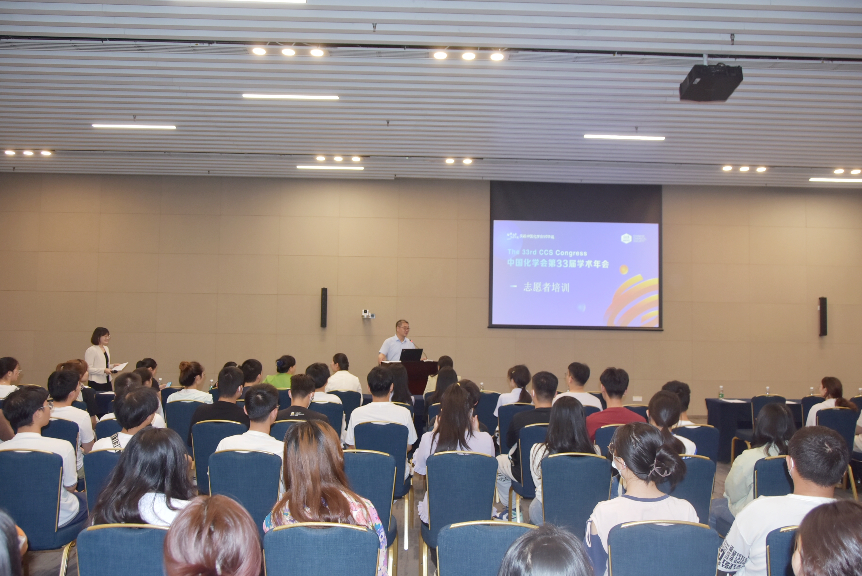 李志波在致辞中强调,中国化学会年会是中国化学领域高层次、高水平、高规格的学术盛会,希望大家弘扬志愿精神,践行服务理念,汇聚青春动能,在工作中弘扬科大家风、展现精神风貌,服务时增长专业见识、拓宽学术视野,把握好这次服务和学习的机会,为年会的成功举办贡献一份力量。主办单位相关负责人围绕年会基本情况、岗位设置、服务技能等方面对志愿者进行系统的岗前培训。
