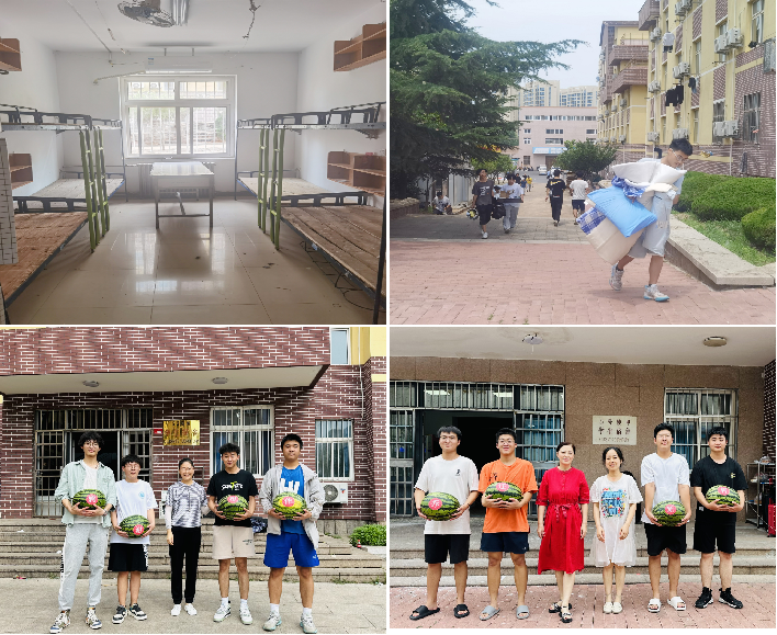 宿舍搬迁工作关系到员工的切身利益,关系到校园的安全稳定。学院明确分工,落实责任,加强宣传,营造良好的搬迁氛围,并为同学们提供小推车、编织袋等工具,为员工们宿舍搬迁保驾护航;搬迁过程中,辅导员老师、志愿服务队全程跟进,密切配合,及时沟通,确保搬迁工作有条不紊、有序进行。另外,2022级员工还为宿舍管理老师送上夏日清凉,精心准备西瓜并贴上“感谢相伴”“乔迁新居”的字样,向宿舍管理老师一年来的关心和支持表示感谢。