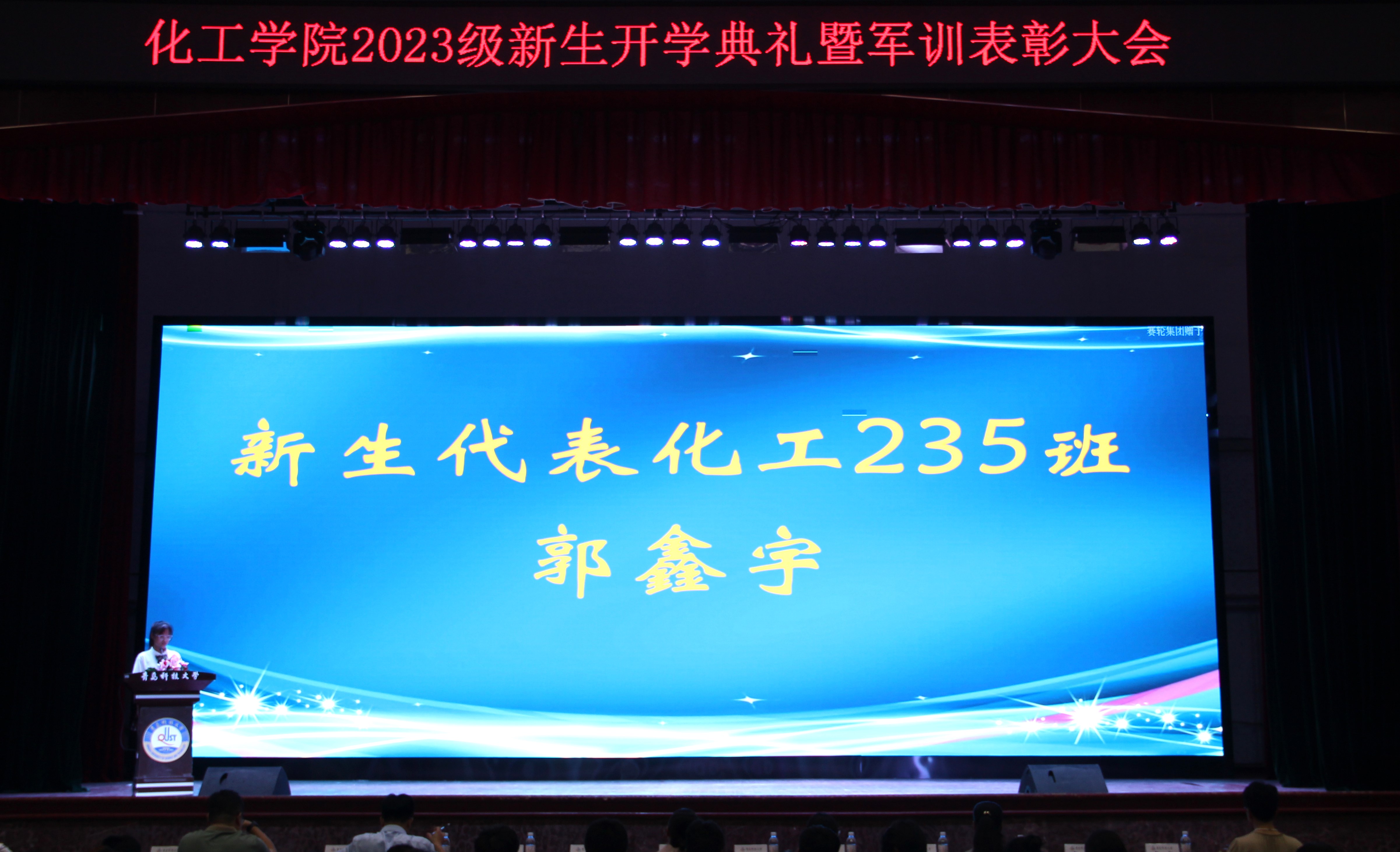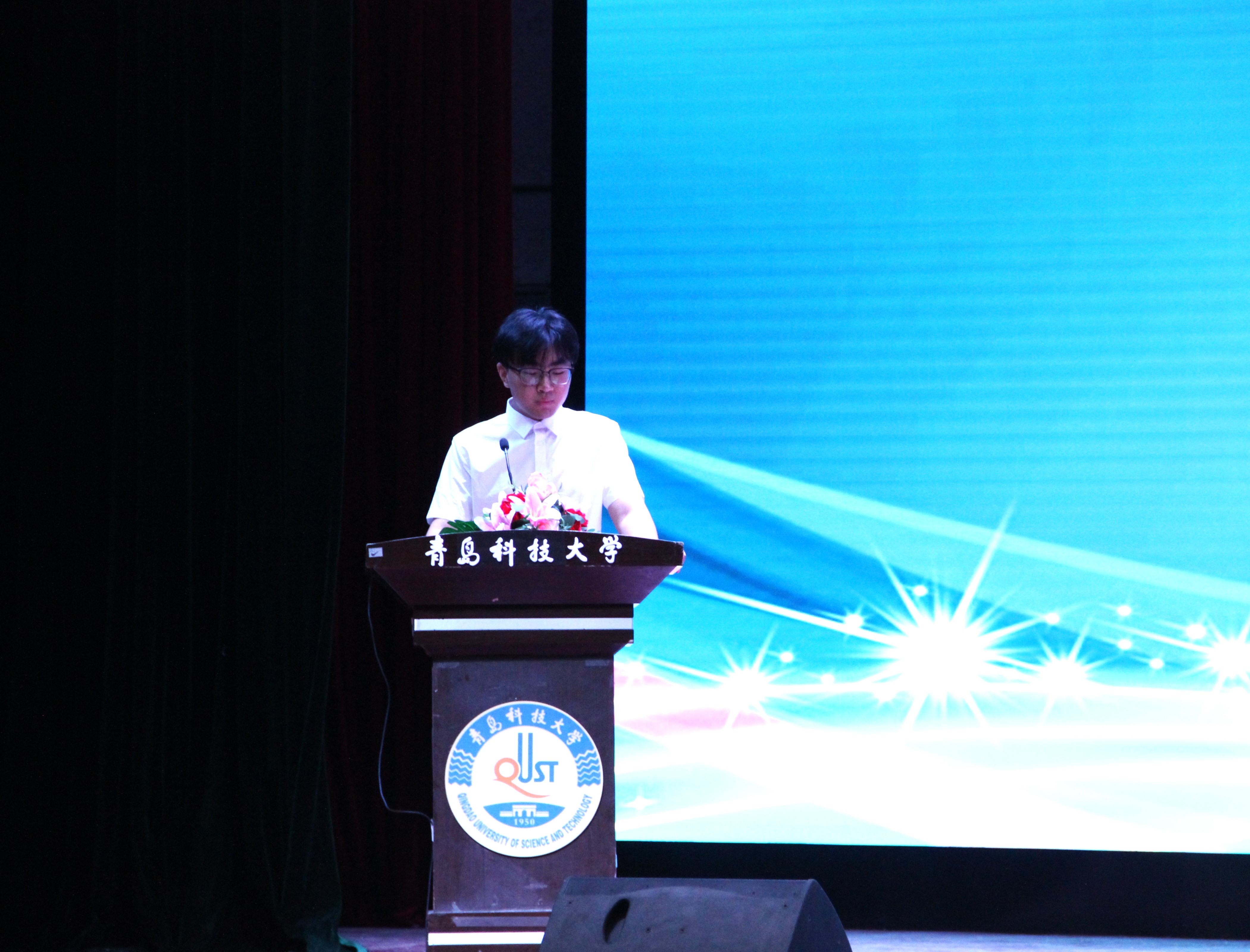 新生代表、化工235班郭鑫宇同学讲述了自己对老员工活的认识,并对今后四年的美好生活进行了畅想。“今后,我们将共同肩负青科大的责任和使命,一起见证青科大的发展和繁荣,共同谱写属于青科大的壮美华章。”
