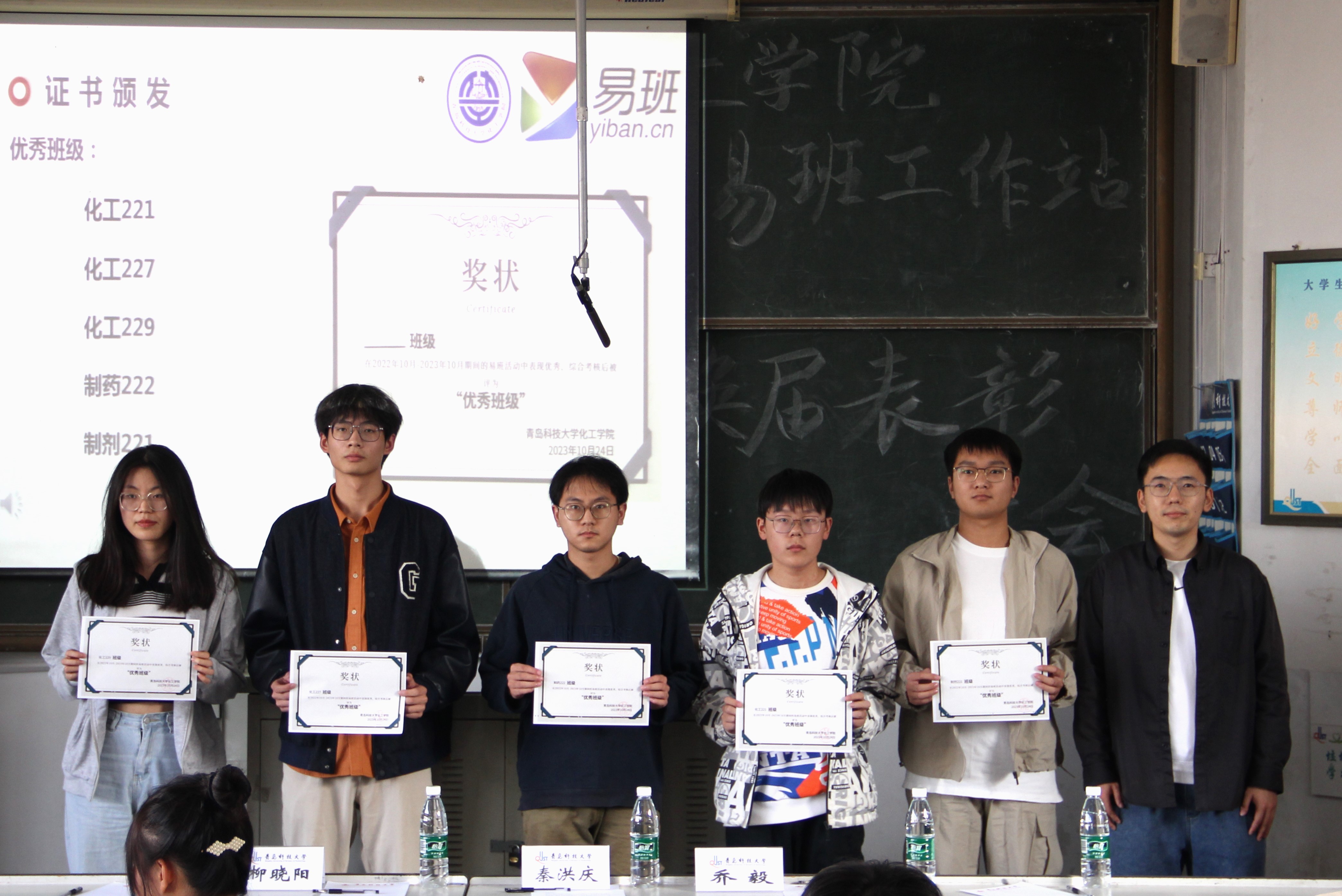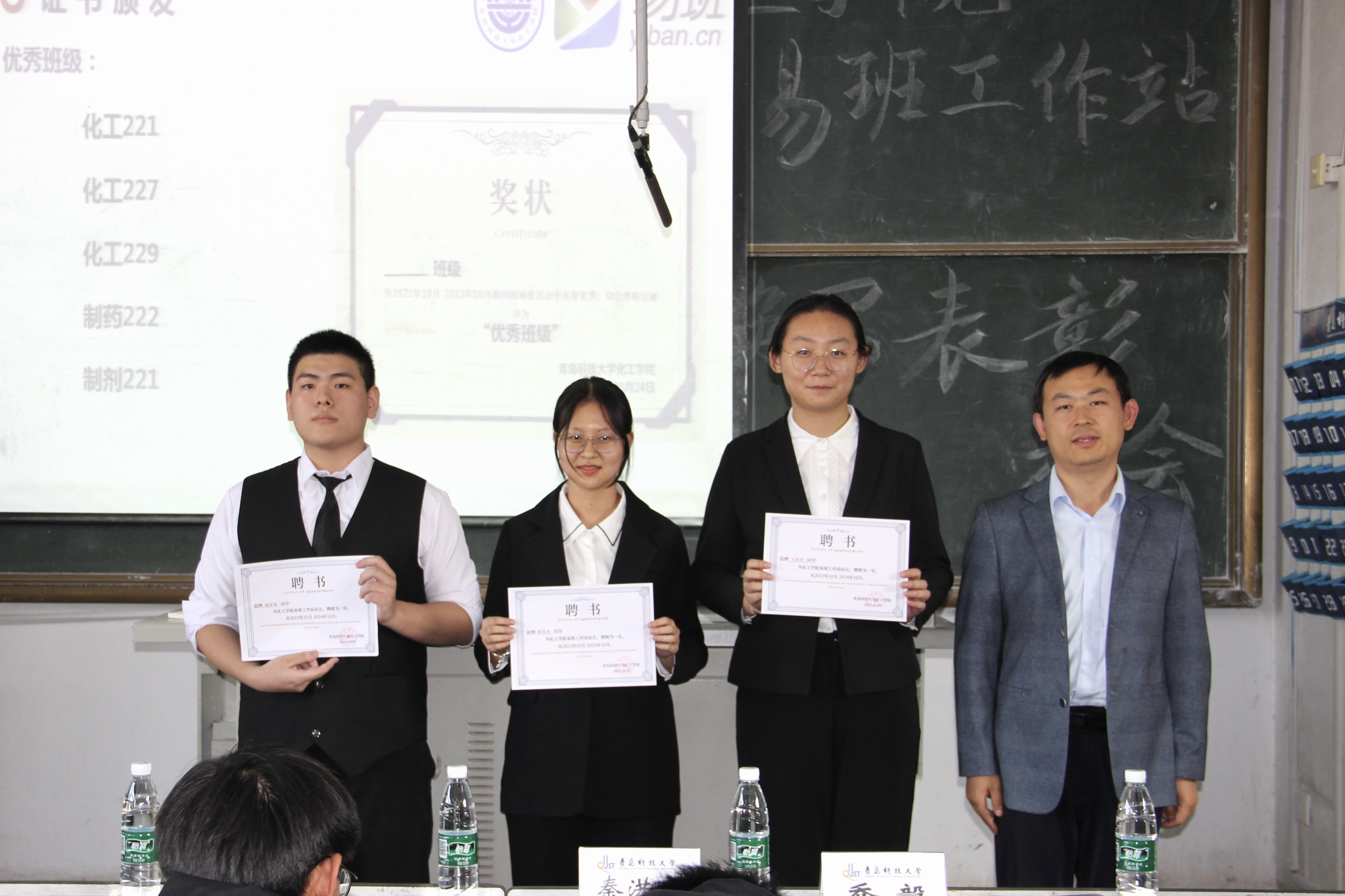 与会老师和代表为获奖的个人和班级颁发证书。