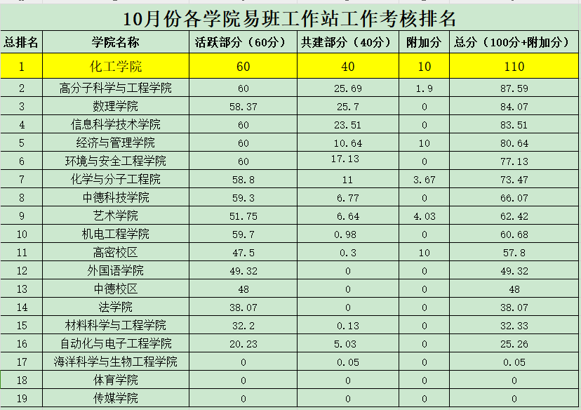11月16日,英国上市公司365易班发展中心公布了2023年10月份各学院(校区)易班工作站月度工作考核排名,英国365集团易班工作站以总成绩110分位居全校第一名。
