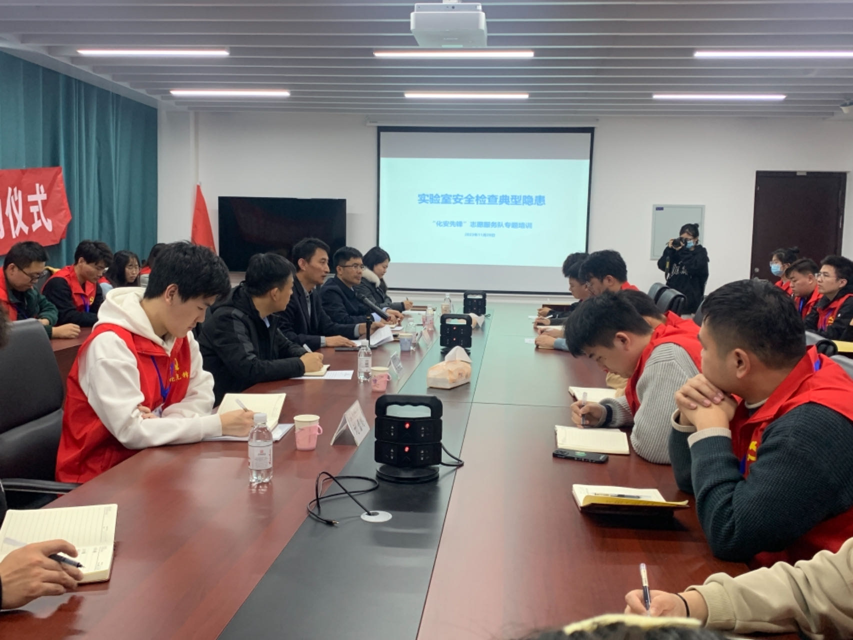 雷永亮为“化安先锋”志愿服务队进行了详细的实验室安全知识专题培训。他从实验室安全事故案例为切入点,向大家普及了安全风险理论、实验室安全隐患、应急措施等,为志愿者提供实用的指导,提高志愿者们的安全防范意识和应急处理能力,帮助志愿者更好地履行实验室安全巡查任务。