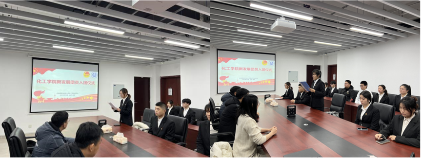 仪式在庄严肃穆的国歌中拉开帷幕。宋伟国宣读32位新发展团员名单。殷佳珞、乔毅、孙希玲为新发展团员代表佩戴团徽。
