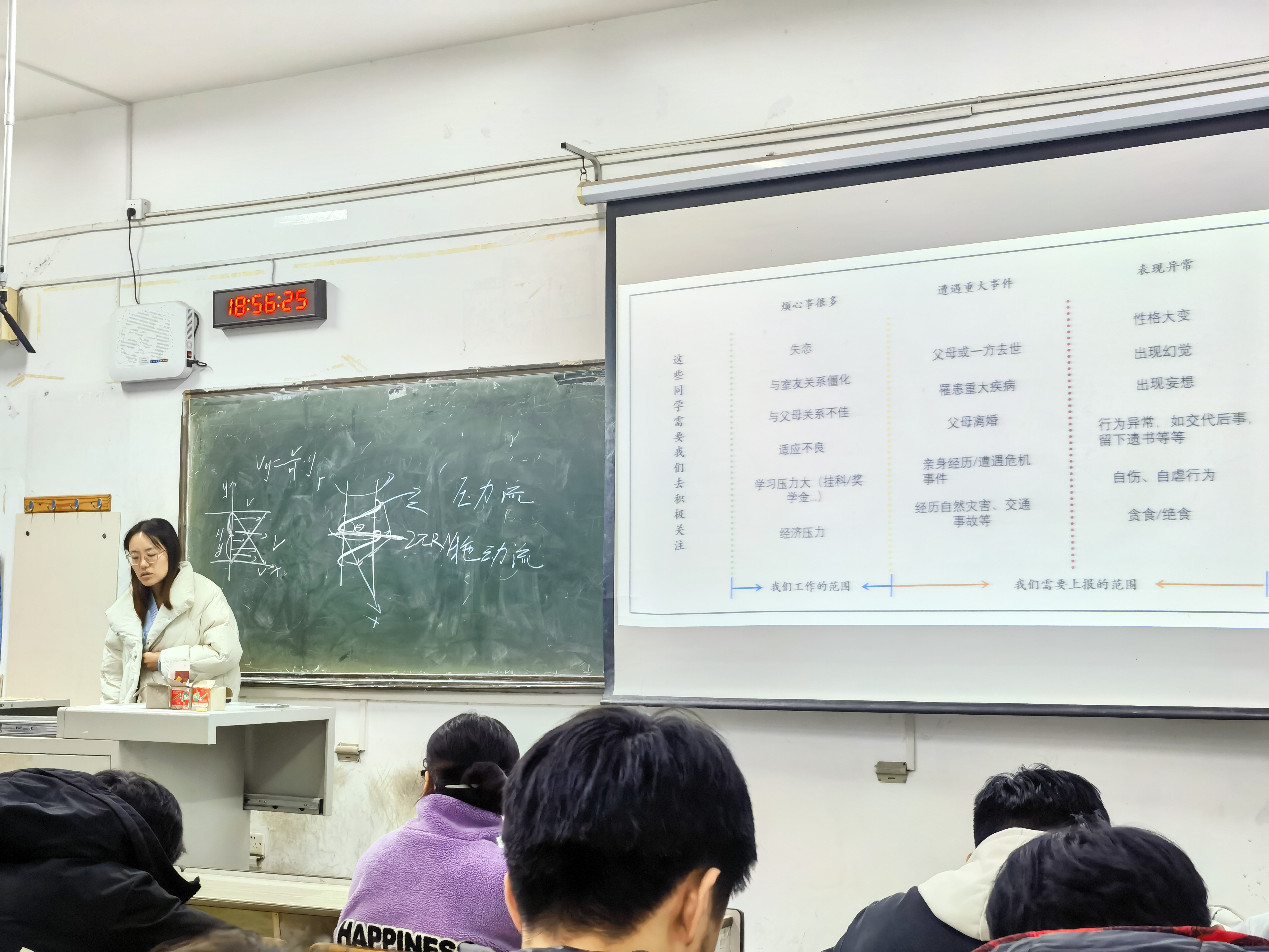 培训最后,孙希玲结合案例分析为大家讲解了抑郁等心理疾病症状以及心理委员、心音使者的心理帮扶基本技巧、话术,面对危机事件的正确应对方式,充分发挥朋辈心理辅导的作用。