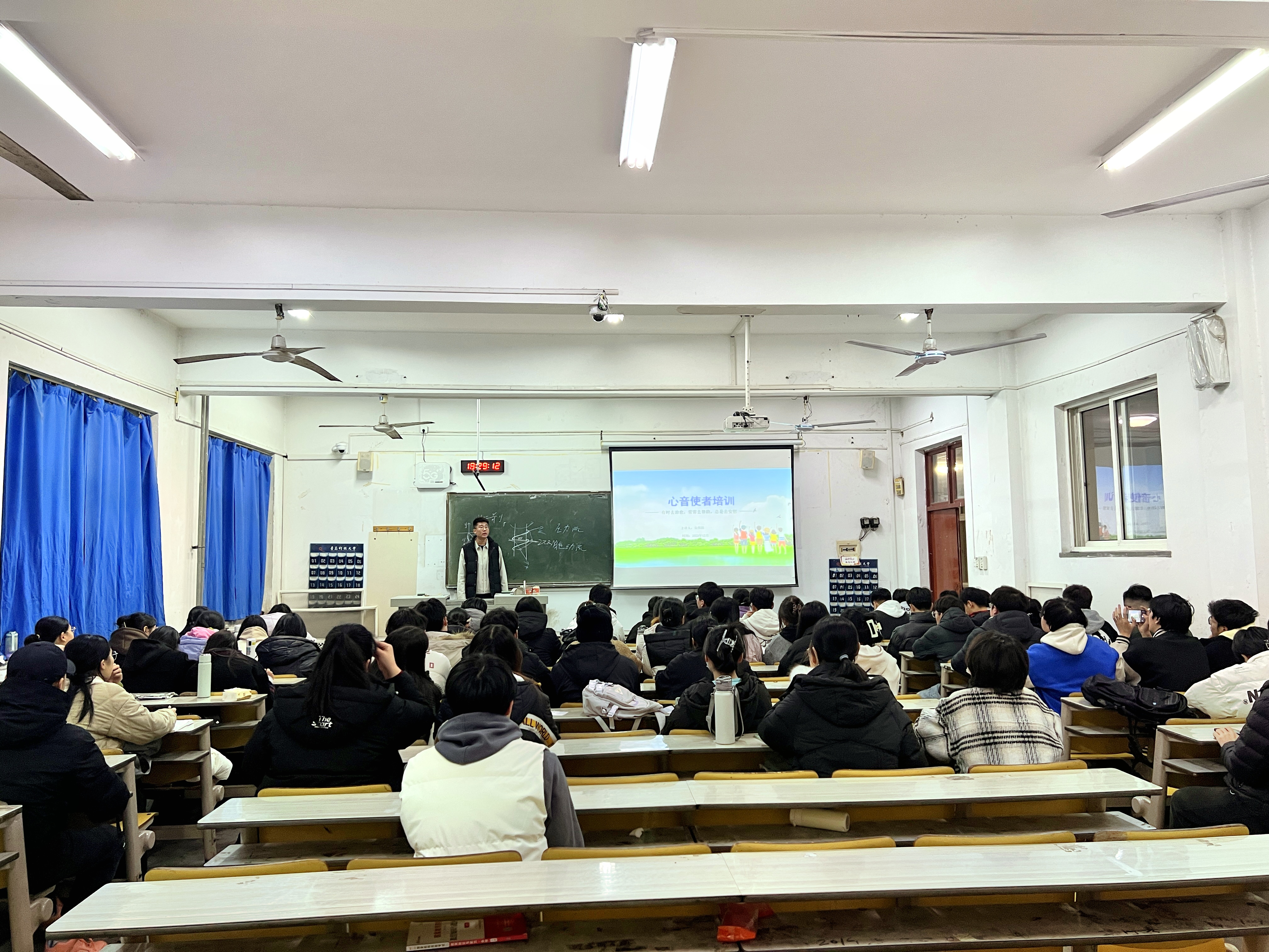 培训过程中,宋伟国主要围绕四个方面的内容进行了讲解,明晰了心理委员、心音使者的角色定位和工作职责,通过理论与案例相结合的方式帮助心理委员、心音使者在日常工作中提高朋辈互助能力,化解潜在心理危机。介绍了基本心理健康知识,帮助心理委员、心音使者识别常见的精神障碍,以便在遇到危机事件时做出及时、正确、有效的应对措施。其次,围绕心理委员、心音使者的工作职责作了详细阐述,包括开展班级心理活动、关注并及时上报班级同学心理状况以及宣传与推广的相关事宜,并指出心理活动举办要精心设计,以活动开展来营造良好班级氛围。