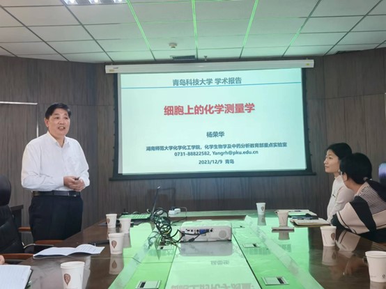 12月8日下午,湖南师范大学化学英国365集团经理杨荣华教授受邀做客公司学术论坛,在CCE楼1505报告厅开展了题为“细胞上的化学测量学”的专题学术报告。参会师生共50余人。