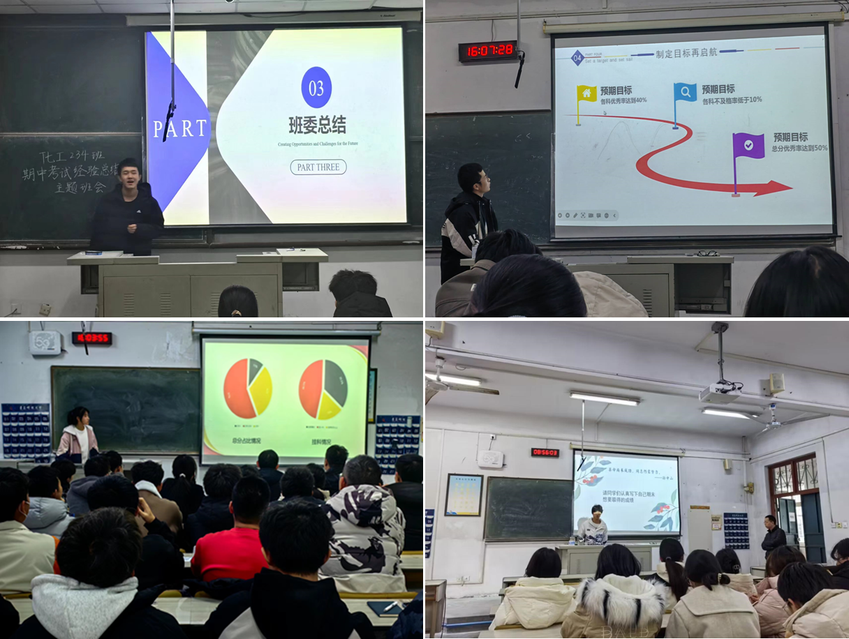 会上,各班级就此次期中考试的成绩做出了数据分析和考后总结,邀请班上成绩优异的同学进行学习经验和学习方法的分享,每位同学以不同的形式对开学以来的生活和状态做了总结与反思。老师们针对各班情况进行总结发言,指出有些同学的学科成绩不够均衡,在某些科目上存在明显的知识漏洞,提醒同学们要认真分析自己的考试成绩,找出问题所在,制定针对性的复习计划,鼓励同学们要保持积极的心态和良好的学习习惯,充分认识到坚持和毅力的重要性,鼓励同学们在接下来的学习和复习中要坚持不懈,以更加积极的态度和刻苦的努力,在期末考试中争取更好的成绩。