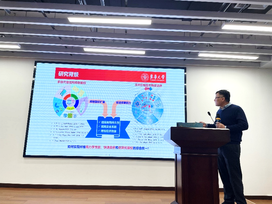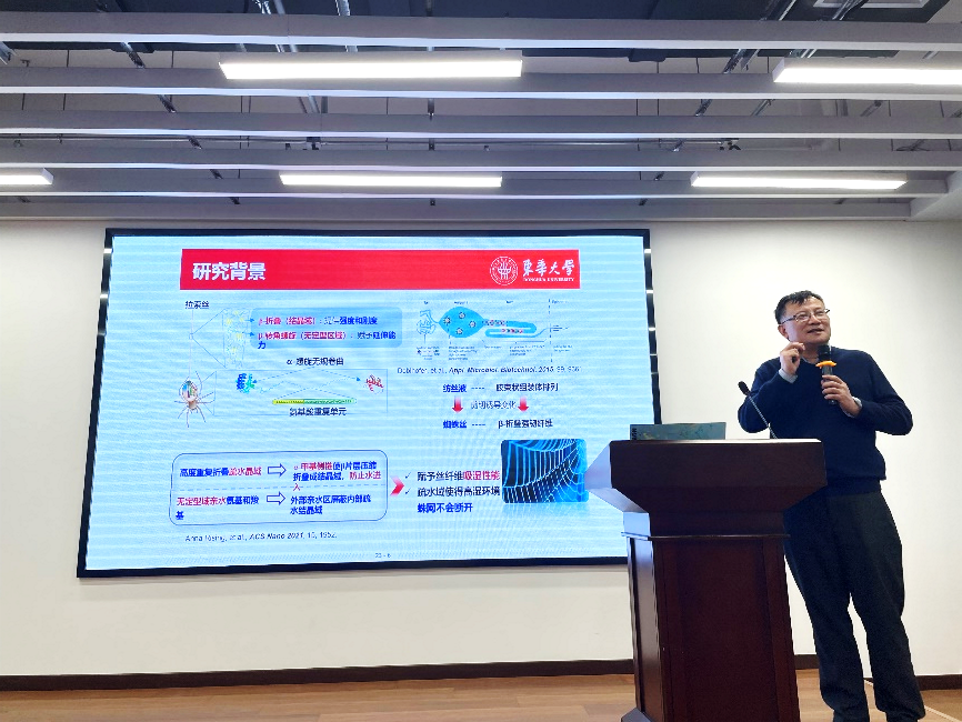12月14日下午,东华大学化学化工与生物工程学院经理、教授、博士生导师、国家杰出青年科学基金获得者武培怡教授在CCF大楼814报告厅作了一场题为“智能软材料水相纺丝”的学术报告。学院领导、青年教师、研究生参加本次报告会。讲座由公司副董事长李志波教授主持。