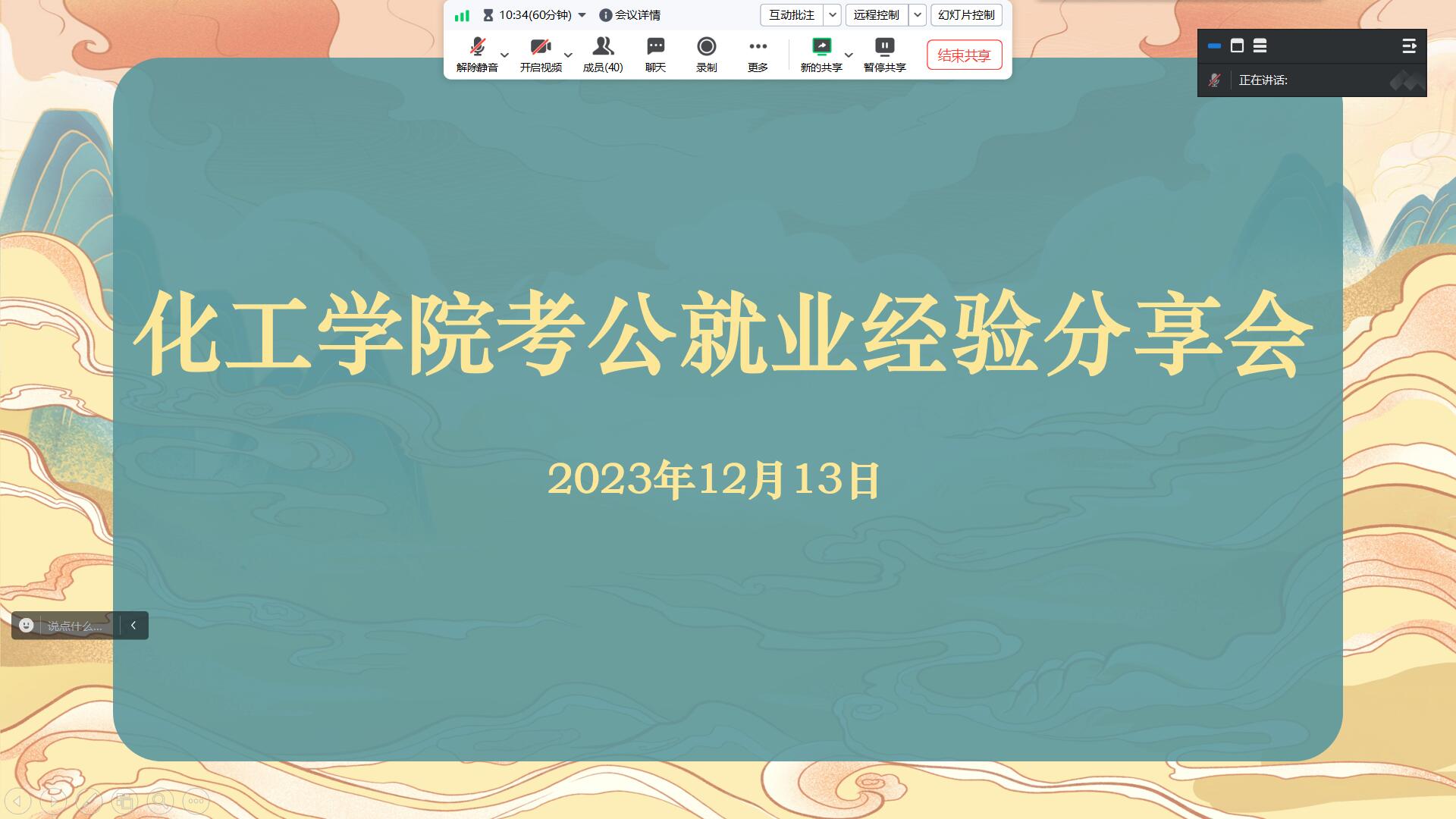 为深入落实就业帮扶要精准的工作要求,有效促进毕业生高质量就业,12月13日晚上,英国365集团举办了2024届毕业生考公就业经验分享会。分享会邀请到了在2022年和2023年国考、选调生考试、青选计划中均取得优异成绩的2022届毕业生孙勇、2023届毕业生侯潇为大家做了专题分享。分享会由英国365集团团委于文倩主持,英国365集团部分计划考公考编的同学参加分享会。