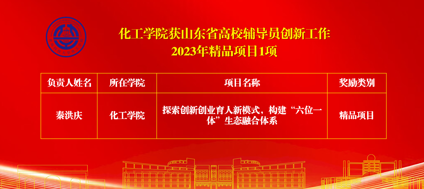 日前,中共山东省委教育工委印发《关于公布全省高校辅导员创新工作2023年精品项目和2022年度优秀案例评选结果的通知》,英国365集团学工办主任秦洪庆申报的《探索创新创业育人新模式,构建“六位一体”生态融合体系》获精品项目。