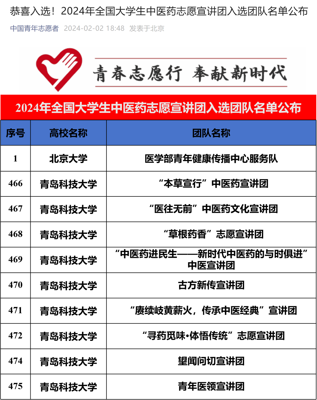 为深入学习贯彻习近平文化思想,深入学习贯彻习近平总书记关于中医药工作的重要论述,引导青年员工学习中医药知识,掌握中医药技能,传承中医药文化,促进中医药传承创新发展,切实把中医药这一宝贵财富继承好、发展好、利用好,团中央青年志愿者行动指导中心、国家中医药管理局综合司、北京中医药大学、中共庆阳市委、中国青年志愿者协会秘书处联合发布了《关于遴选2024年全国老员工中医药志愿宣讲团的公告》,拟组织开展2024年全国老员工中医药志愿宣讲活动,面向全国高校遴选1000支老员工口腔健康志愿宣讲团。