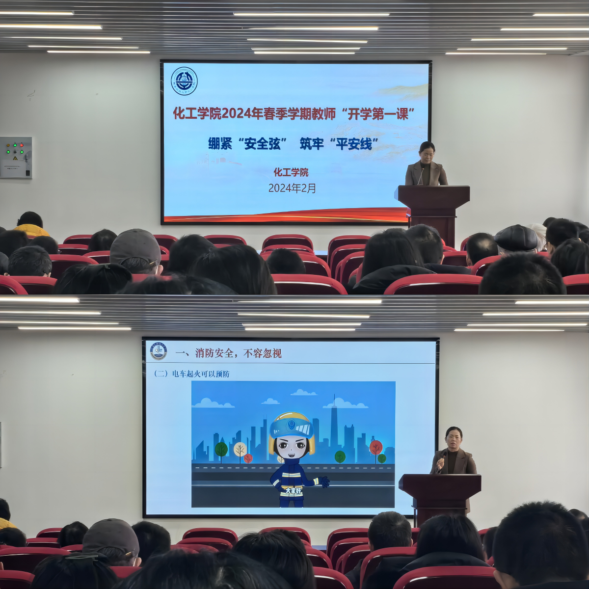 会上,孙明媚为全体教职工上安全教育第一课,她传达了习近平总书记关于学校安全工作的重要指示精神,结合近期南京火灾等几个典型火灾案例进行分析、解读,要求大家要绷紧“安全弦” 筑牢“平安线”,她从住宅安全、实验室安全、宿舍安全和校园安全等方面与大家展开交流,叮嘱老师们要进一步强化安全意识,树立安全观念,扎实提升了全体教职工的安全防范意识和应急处置能力。