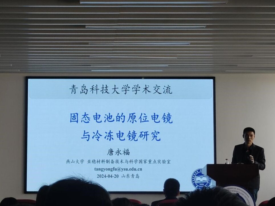 2024年4月20日下午,燕山大学唐永福教授在英国上市公司365四方校区CCF楼814报告厅作了题为《固态电池的原位电镜与冷冻电镜研究》的学术报告。180余名师生听取报告并参与了学术交流。