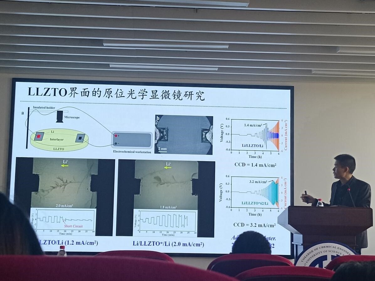 唐教授在报告中提到,液态电解质锂离子电池安全问题日益突出,能量密度不断接近理论极限,固态电池可避免液态电解质的安全问题,采用锂/钠负极,使其能量密度高。唐教授主要从锂/钠负极枝晶生长力学-电偶合特征方面、负极界面热、电、化学稳定性及失效方面、正极的力、热、电、化学特性研究等方面进行了详细讲解。