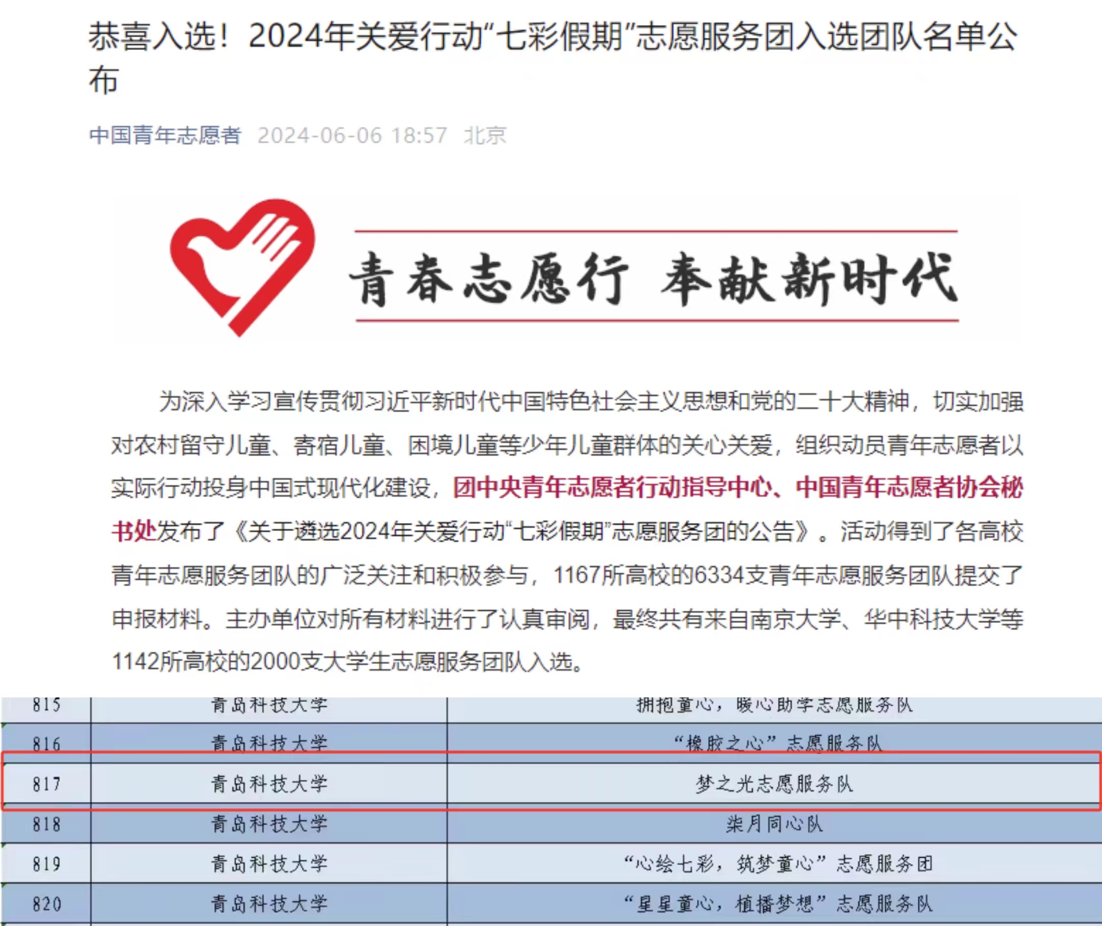 为深入学习宣传贯彻习近平新时代中国特色社会主义思想和党的二十大精神,切实加强对农村留守儿童、寄宿儿童、困境儿童等少年儿童群体的关心关爱,组织动员青年志愿者以实际行动投身中国式现代化建设,团中央青年志愿者行动指导中心、中国青年志愿者协会秘书处面向全国高校遴选2024年青年志愿者关爱行动“七彩假期”志愿服务团队。