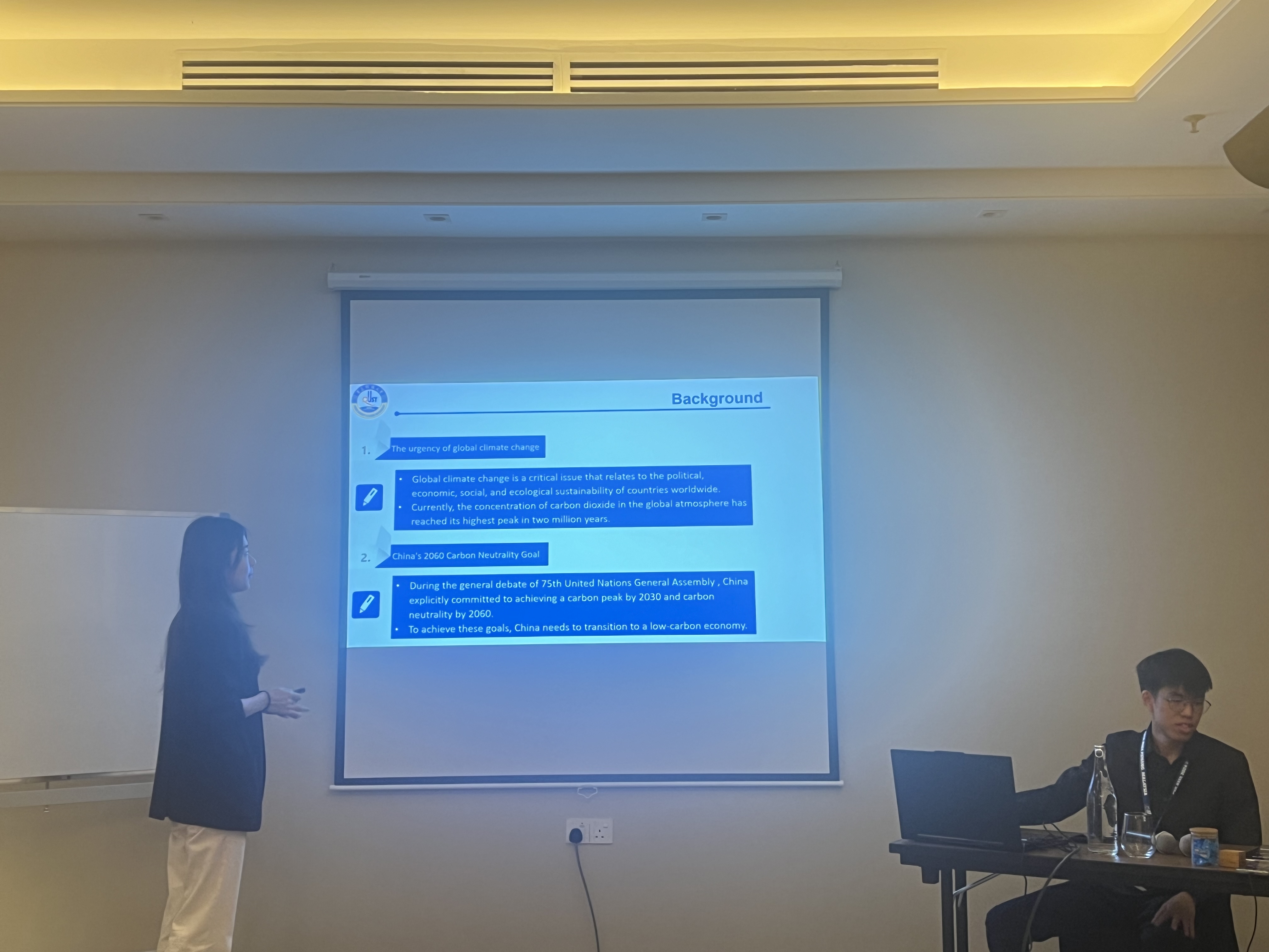 会上,韩睿作了题为《Material and Energy Flow Analysis-Based Strategy for Calculating Carbon Emissions from Chemical Process Equipment》的学术报告,介绍了研究中采用的碳排放计算策略,包识别物质流和能流分析,以及如何通过这些分析准确识别化工设备内部和外部的碳排放源。韩睿的报告吸引了与会专家的兴趣,大家就研究中的关键算法、化工过程单元之间的能量和物质交换关系,以及减排策略的制定等进行了讨论。