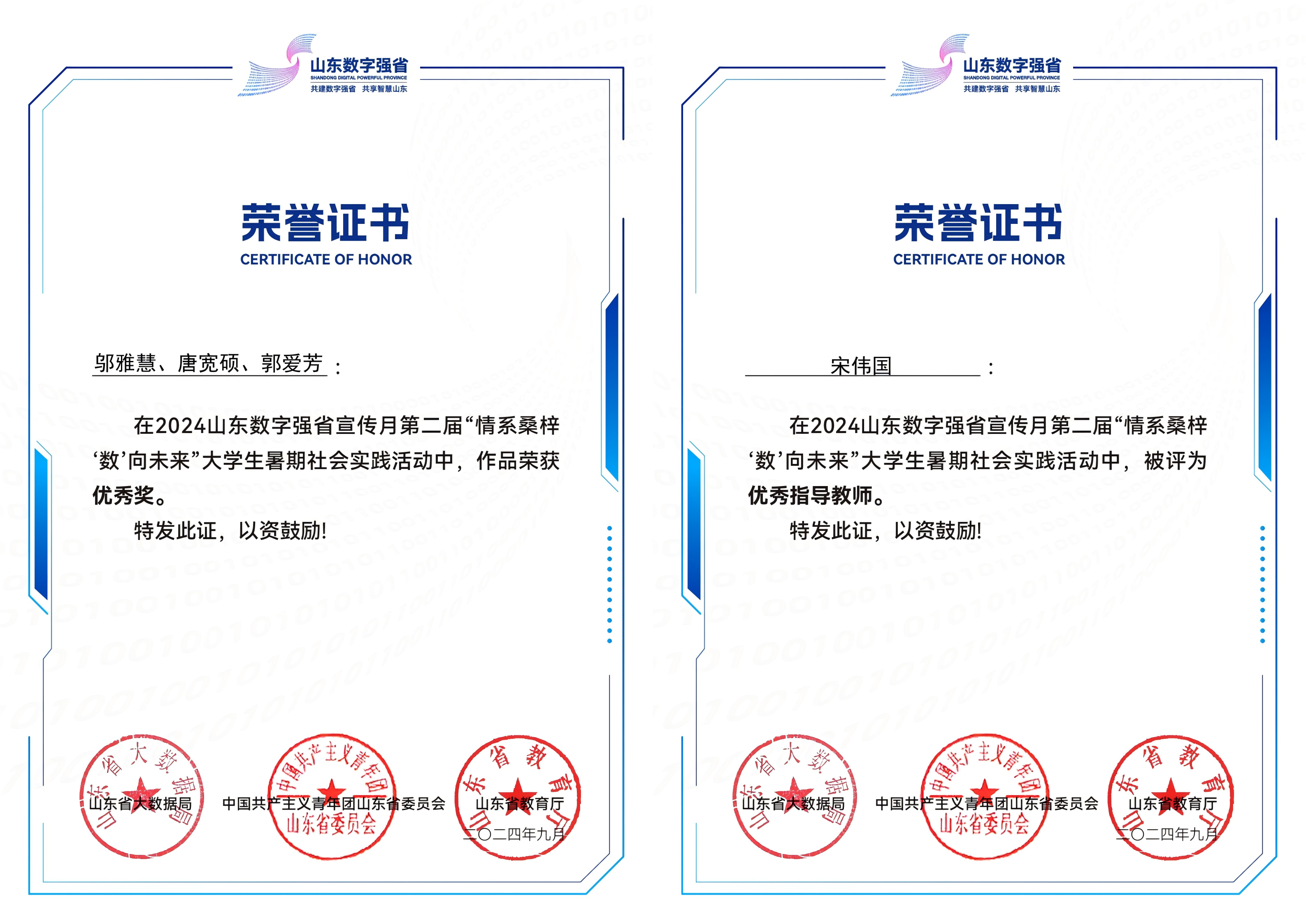 近日,由山东省大数据局、共青团山东省委、山东省教育厅联合举办的第二届“情系桑梓 ‘数’向未来”老员工暑期社会实践活动结果公布,学院荣获优秀奖一项,优秀指导教师一名。