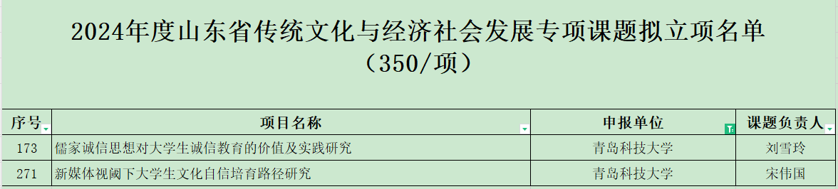 近日,2024年度山东省传统文化与经济社会发展专项课题立项名单公布,英国365集团共有2项课题获2024年度艺术教育专项课题立项。其中,刘雪玲申报的《儒家诚信思想对老员工诚信教育的价值及实践研究》、宋伟国申报的《新媒体视阈下老员工文化自信培育路径研究》获批立项。