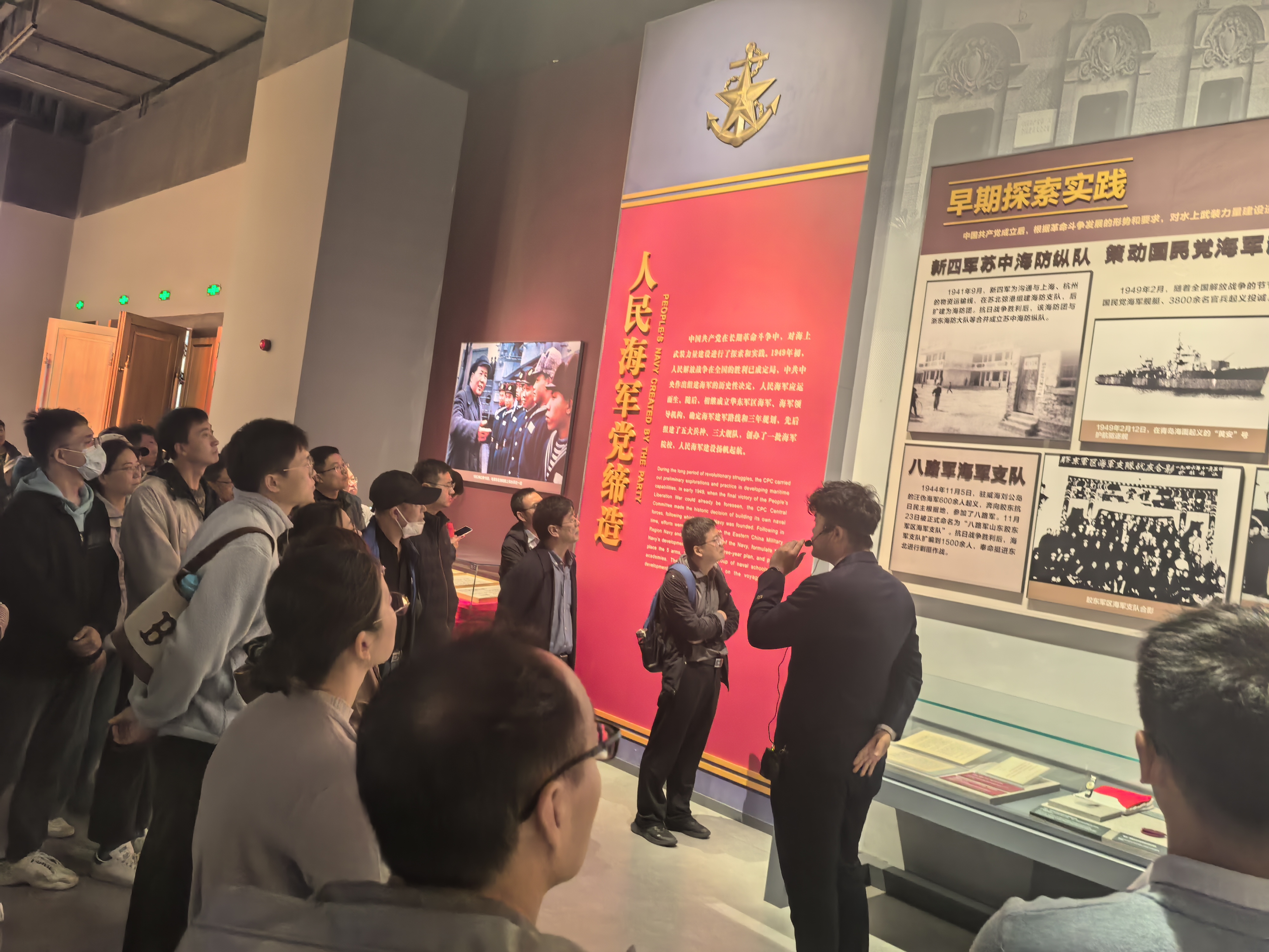 为深入学习贯彻习近平新时代中国特色社会主义思想和党的二十届三中全会精神,加强公司党员队伍体系化建设,增强教工党员的国防意识和爱国情怀,提升基层党组织凝聚力和战斗力。11月15日,公司党委组织学院教工党员前往中国人民解放军海军博物馆开展“化匠笃行 铭记使命 承继海防辉煌史”主题党日活动。