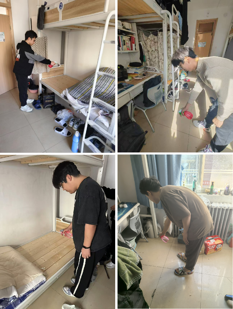 消杀过程中,各班级负责人秉持“全方位、全覆盖、无死角”的原则,对宿舍内的桌面、地面、床面及宿舍楼内走廊等区域进行全面消毒,严格按照相关规定的方法和操作喷洒消毒液,消杀结束后及时开窗通风换气,降低员工受病毒感染的风险。