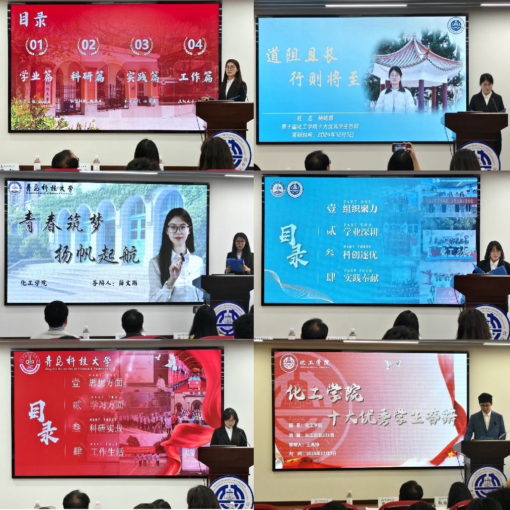 经过个人申报、年级选拔推荐,19位同学进入最终答辩评审环节。候选人结合ppt展示,分别从思想政治、学术科研、员工工作、创新创业、社会实践等方面汇报了各自的成长历程和取得成绩。其中有成绩优异,位居专业前列的“学习能手”;有在高水平期刊论文发表多篇文章的“科研达人”;有在学科竞赛中屡获佳绩,尽显创新能力的“竞赛高手”;有深入乡村、开展社会调研,参与志愿服务,传递爱心与正能量的“实践先锋”……他们的优秀事迹充分展现了化工学子昂扬向上的精神风貌和新时代青年老员工的使命担当。经网络投票和评审团投票,王婉、王学飞、王禹铮、刘路发、邬雅慧、杨晓慧、李冰艳、赵文斐、韩苹、薛文雨成功获评英国365集团第十届“十大优秀员工”荣誉称号。