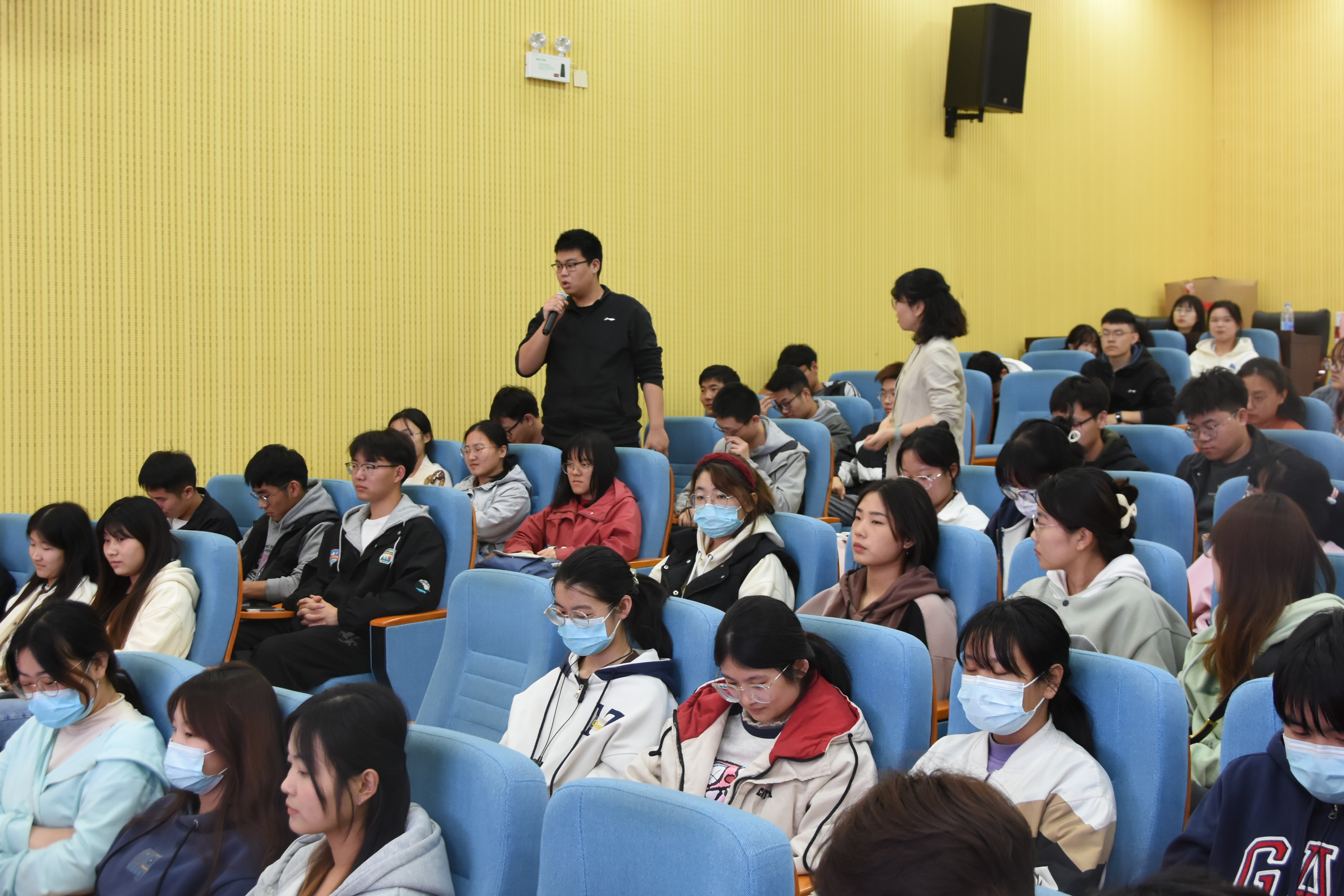 互动环节中,同学们积极踊跃发言提问。对于同学们关心的职业晋升通道、实习机会等问题王倩倩一一耐心解答。