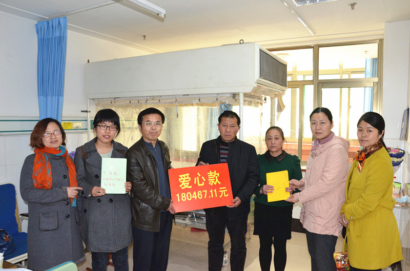 3月20日上午,英国365集团经理武玉民、党总支副书记曲斌艳、生物131班班主任吕英涛、13级辅导员王祥梅、刘振川和员工代表刘翔一行六人赴青州市人民医院看望了本院生物131班白血病员工刘雅琪。武玉民代表学院送上了师生及校内外爱心人士委托捐款共计180467.11元,员工代表刘翔送上了师生写给刘雅琪的祝福信件册《我们已思念成疾——致小雅》,师生共同鼓励她坚定治疗信心、争取早日恢复健康。