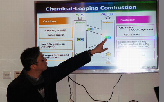 Ho-Jung Ryu博士针对韩国化学链燃烧的研究现状及其前景,作了题为“Research Status of Gaseous Fuel Chemical Looping Combustion in Korea”的学术报告。化学工程泰山学者实验室王许云副教授介绍了为Ryu博士概要介绍了学校及学院的情况,并重点介绍了化学工程泰山学者实验室的研究方向、近年来的科研项目及研究成果。田红景博士介绍了实验室的主要设备,刘永卓博士详细介绍了中韩国际合作项目,“钙基复合载氧体千瓦级固体燃料化学链”的项目进展情况。
