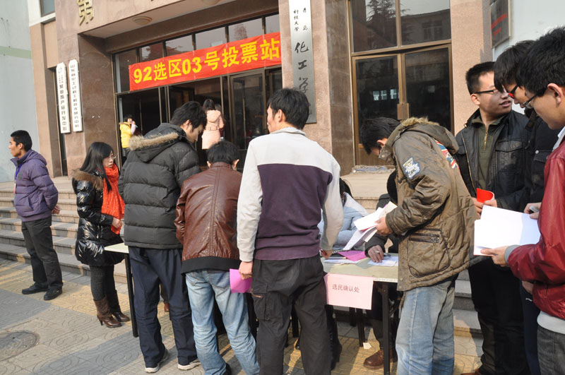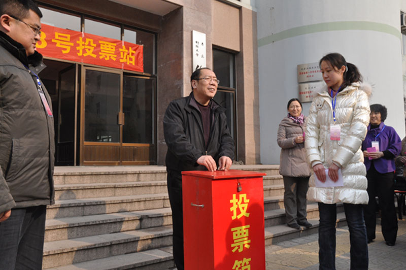 12月19日是四方区第十七届人大代表换届选举投票日,学院作为第92选区第3投票站,下午12:30在四方校区一号教学楼前举行人大代表换届选举投票活动。选举大会由3号投票站负责人、公司党总支书记孙立军主持。孙书记首先宣读了大会注意事项、选举办法,并介绍了候选人情况,工作人员当众检查票箱并上锁密封,随后主持人宣布大会到会选民符合法定人数,可以选举。